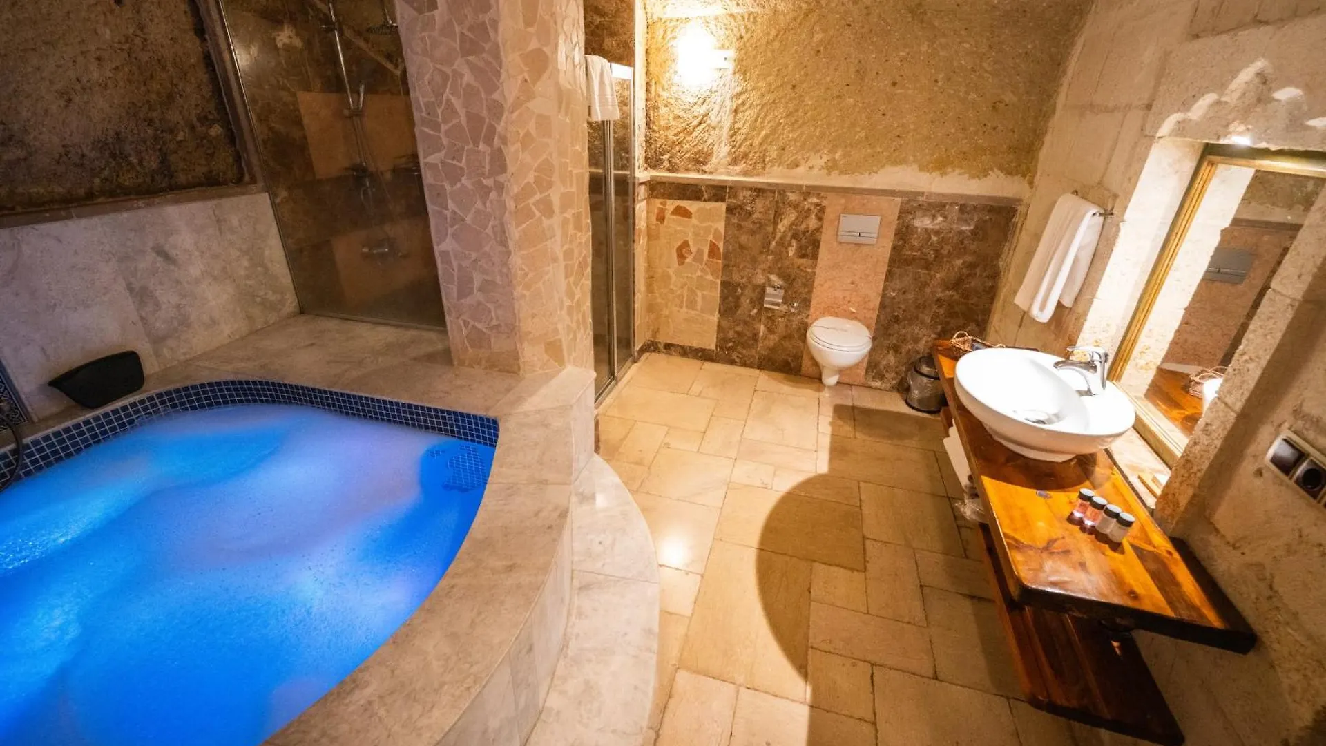 The Aja Cappadocia Urgup will treat you with a free vegetarian breakfast. The on-site bar features free wireless internet and a TV. Guests can enjoy Turkish dishes at Dunya Iskender Kebap settled about a 5-minute stroll away.