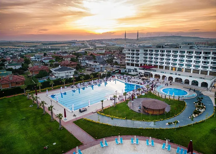 Het prachtige Eser Diamond Hotel Spa & Convention Center Istanbul Silivri met 5 sterren biedt 173 kamers en ligt op 2 km van de kustlijn. Dit hotel biedt ledikanten en een kinderwagen voor kinderen en een binnenzwembad op locatie. Het is strategisch in de buurt van de Zee van Marmara gelegen.