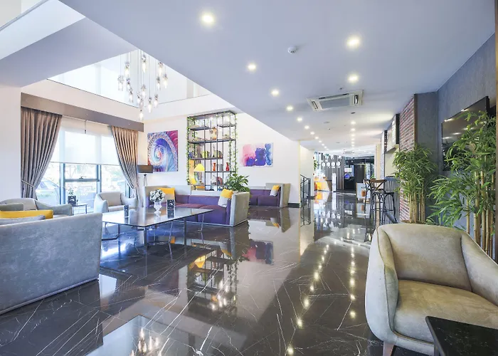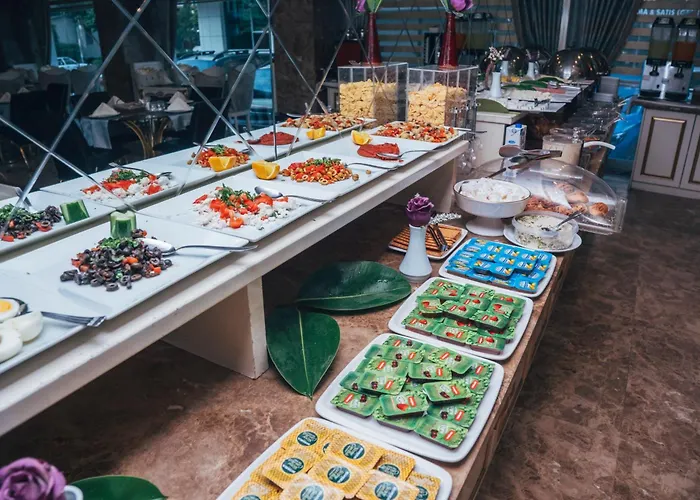 Bn Hotel Thermal & Wellness Mersin, som ligger 15 km från järnvägsstationen Mersin, har utsikt över bergen. På detta 5-stjärniga hotell kan gästerna använda hälsocenter, vattenpark och saltvattenpool eller bada i en uppvärmd pool.