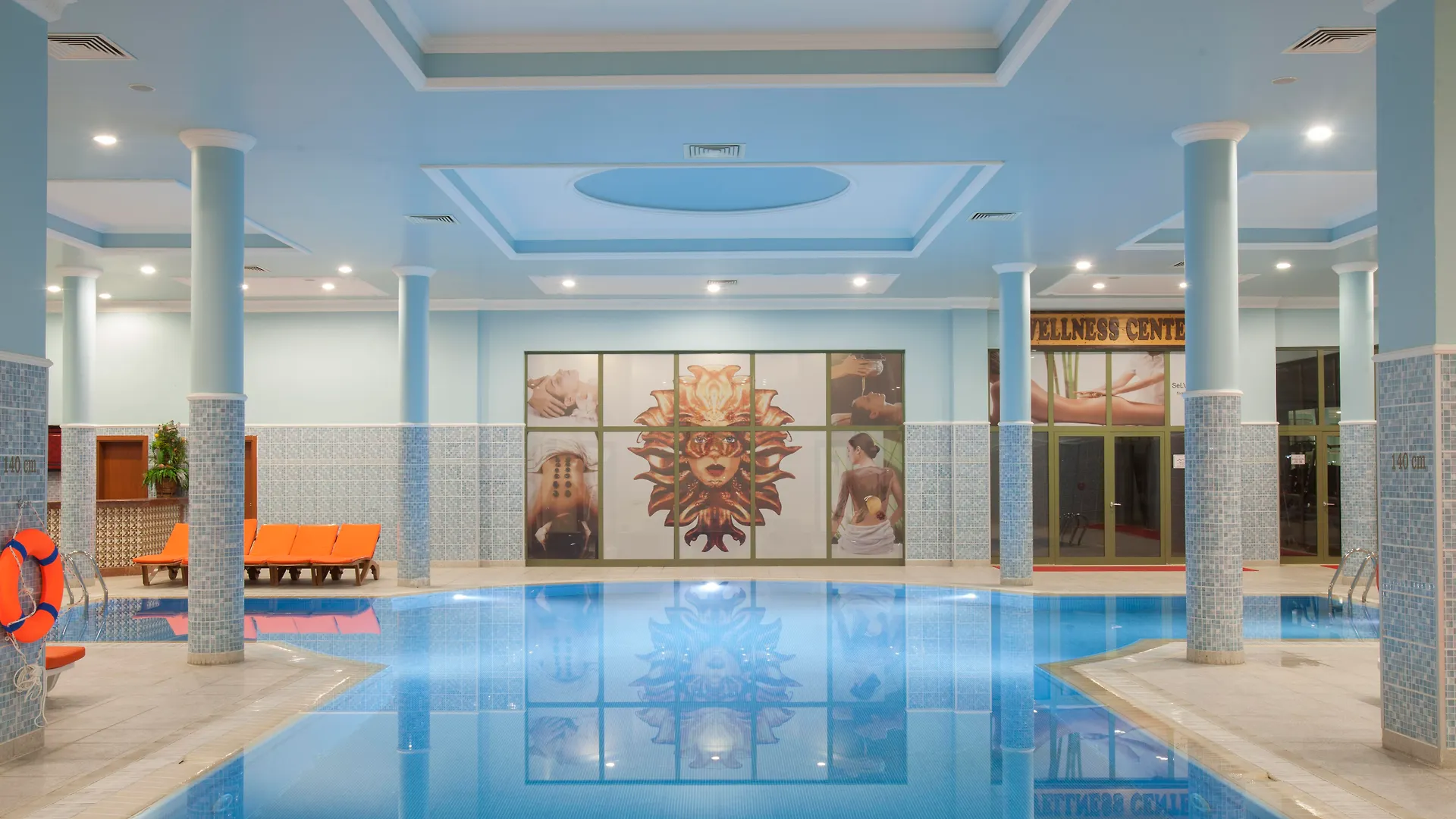 At this Antalya hotel steam baths and massage therapy are available for an extra charge. There are performances, a nightclub and karaoke organised on site. The property offers a gym, an indoor swimming pool and aerobics classes to ensure active guests' pastime.